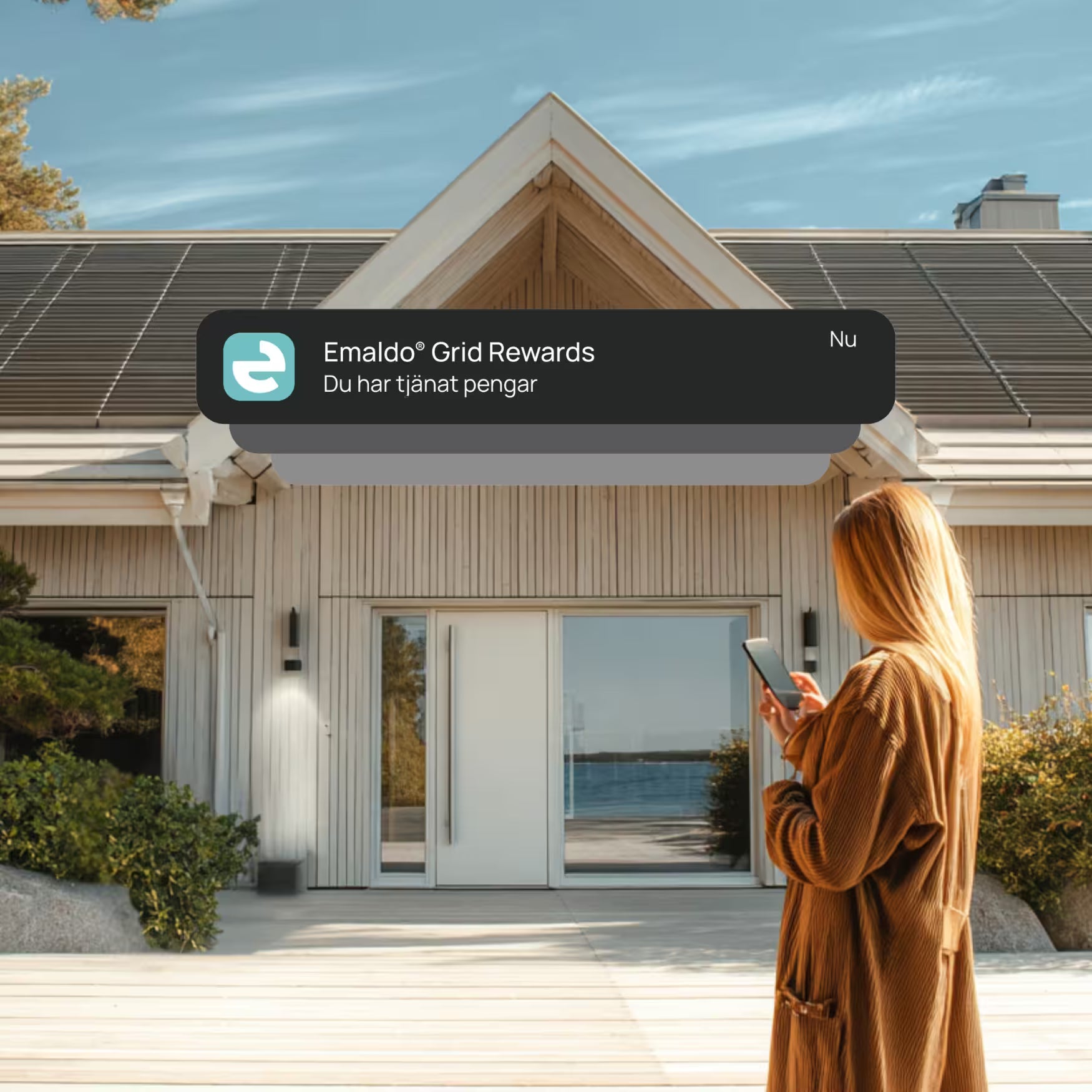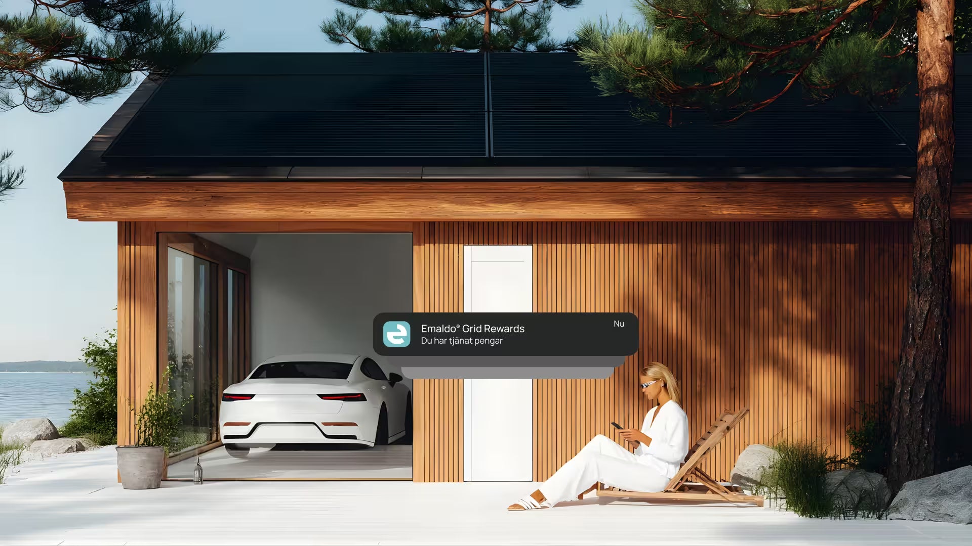 Solpanelerna producerar el dagtid och överskottet lagras i batteriet istället för att säljas billigt till nätet. På kvällar och nätter använder du din lagrade solel – så betalar du aldrig dyrt för nät-el när du kan använda din egen.